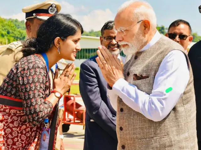 26 सितंबर 2025 (भारत बानी ब्यूरो ) प्रधानमंत्री नरेंद्र मोदी सोमवार को अरुणाचल प्रदेश के पापुमपारे जिले में थे. वहां पहुंचने पर उनका स्वागत लोकप्रिय आईएएस अधिकारी विशाखा यादव ने किया था. इस अभिवादन की फोटो सोशल मीडिया पर वायरल हो रही है. आईएएस विशाखा यादव दिल्ली की रहने वाली हैं और उनकी यूपीएससी स्टोरी अक्सर चर्चा में रहती है. आईएएस अफसर बनने के लिए उन्होंने लाखों की सैलरी वाली प्राइवेट जॉब छोड़ दी थी.