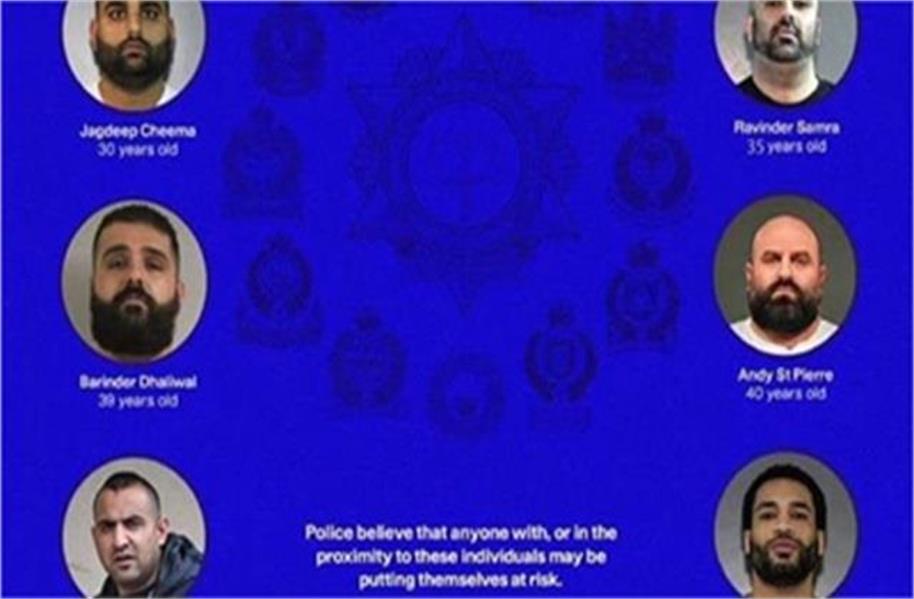 पुलिस द्वारा जारी पोस्टर में शकियल बसरा (28), अमरप्रीत सामरा (28), जगदीप चीमा (30), रविंदर शर्मा, (35), बरिंदर धालीवाल (39), एंटी सेंट पियरे (40), गुरप्रीत धालीवाल (35), रिचर्ड जोसेफ व्हिटलॉक (40), समरूप गिल (29), सुपदिश गिल (28) और सुखदीप पंसल (33) के नाम शामिल हैं। कनाडा से मीडिया रिपोर्टों में कहा गया है कि विशिष्ट कथित अपराधियों से दूर रहने की ऐसी चेतावनियां पहले कभी नहीं सुनी गई थीं, लेकिन हाल के वर्षों में इनमें वृद्धि हुई है।